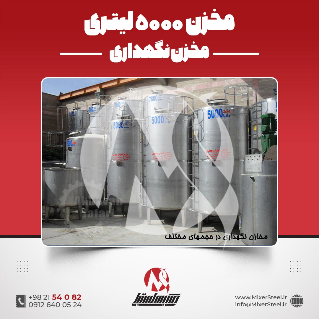 خرید مخزن استیل 5000 لیتری صنعتی | قیمت روز + سفارش ساخت فوری 304/316 + تانکر نگهداری خط تولید