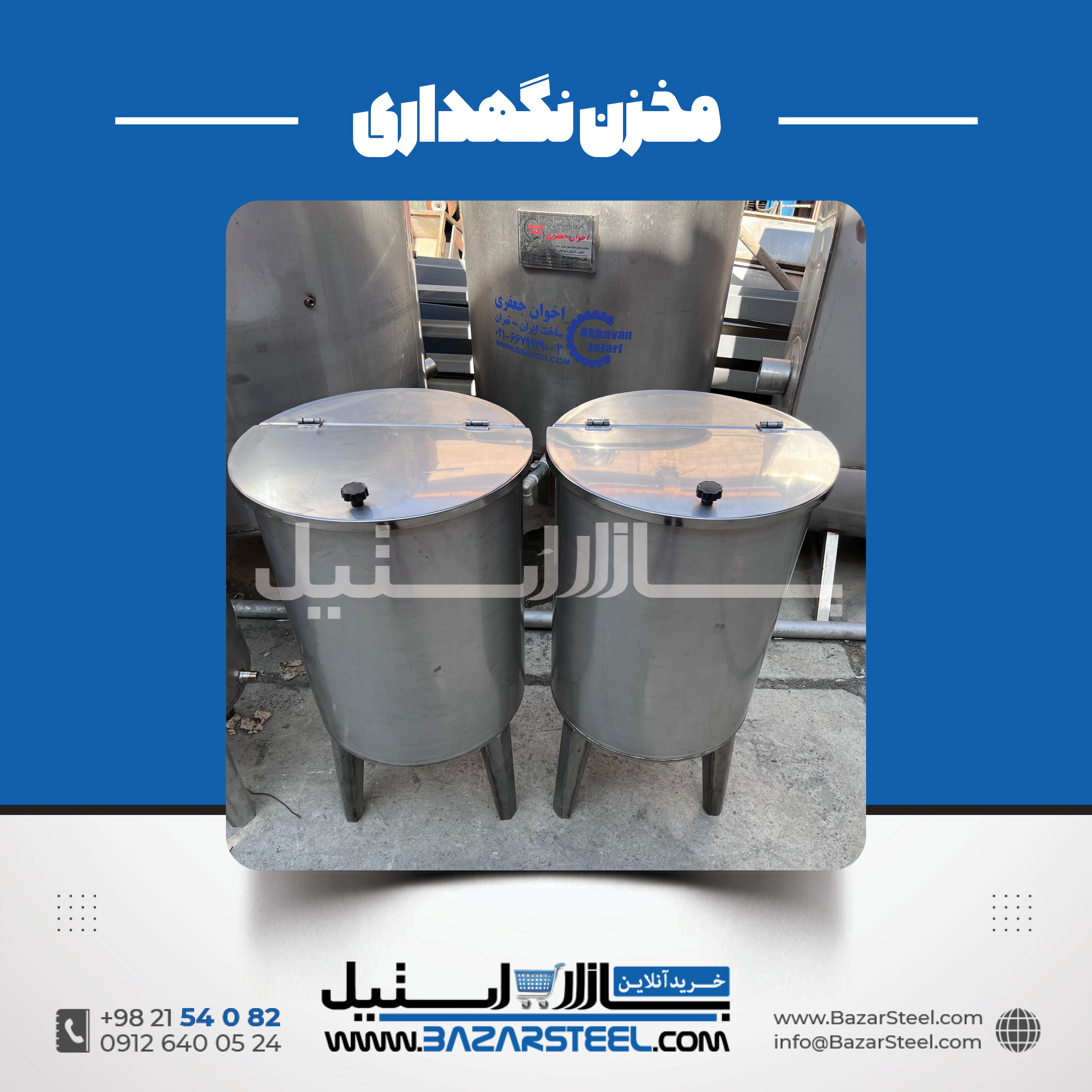 خرید مخزن استیل ۷۵۰ لیتری صنعتی | قیمت روز مخزن 750 لیتری 304 و 316 + سفارش ساخت