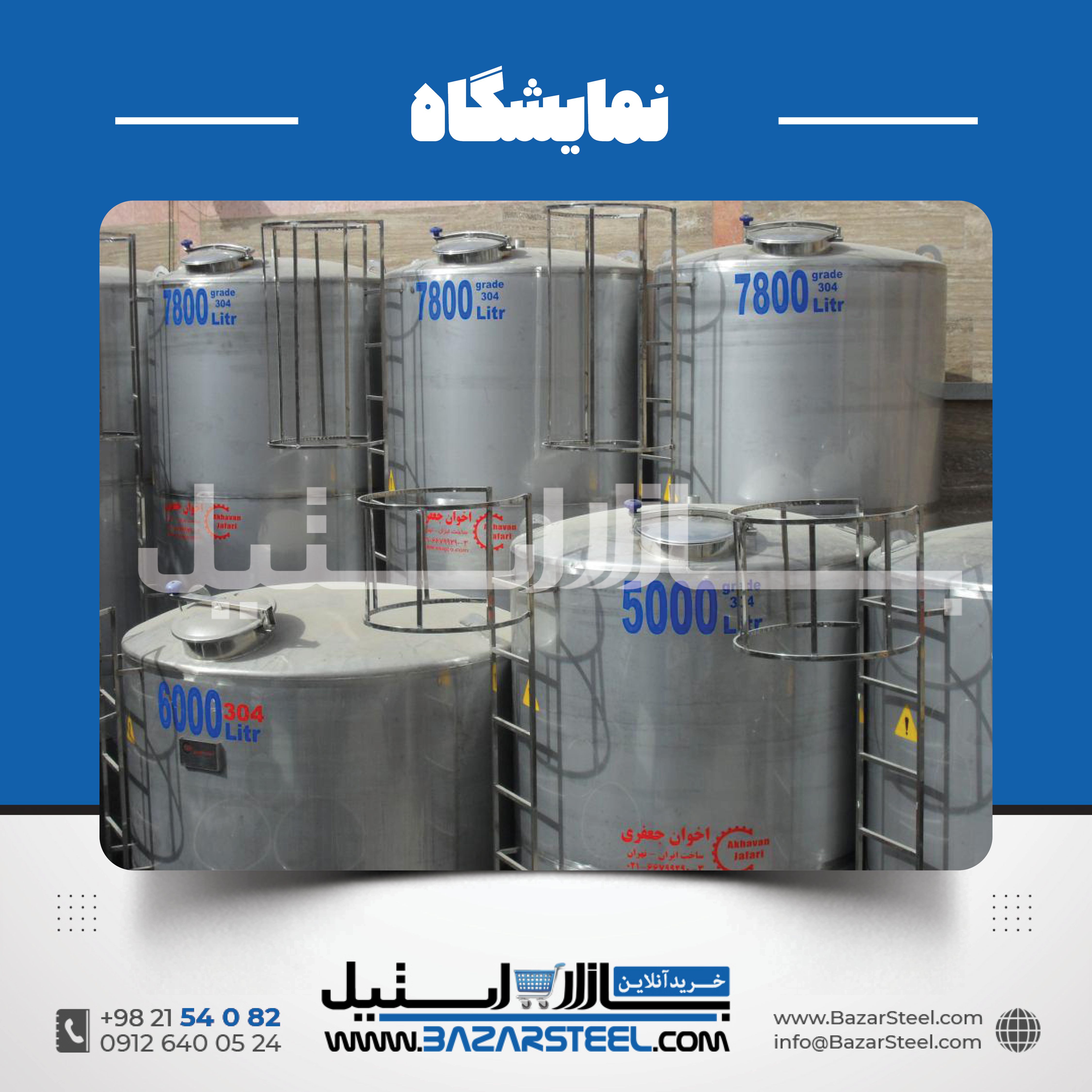 خرید مخزن استیل 7000 لیتری 304 صنعتی | قیمت روز + سفارش ساخت فوری