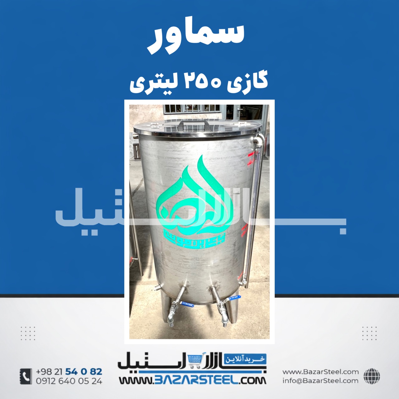 خرید سماور استیل ۲۵۰ لیتری برقی 304 | قیمت سماور سهفاز/تکفاز صنعتی با ضمانت ۱۵ سال