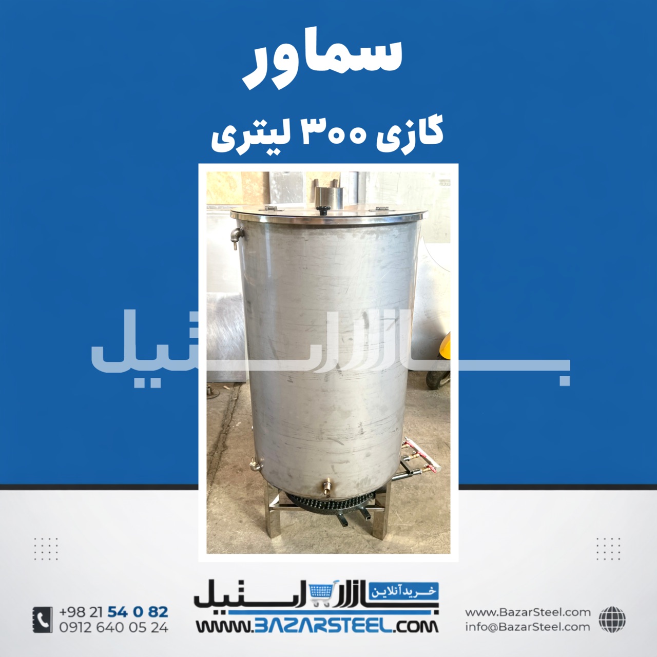 خرید سماور استیل ۳۰۰ لیتری گازی 304 | قیمت سماور صنعتی ۳ شعله(۲و۲.۵mm) با ضمانت ۱۵ سال