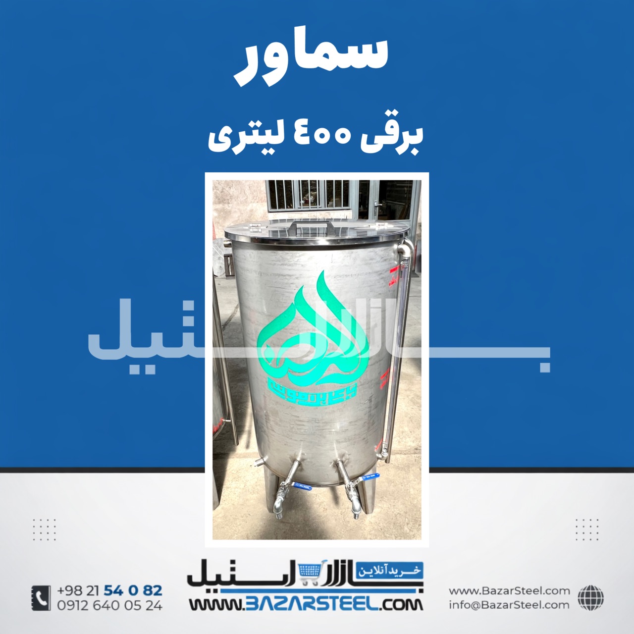 خرید سماور استیل ۴۰۰ لیتری برقی 304 | قیمت سماور صنعتی سهفاز/تکفاز هیأت ها(۱۵ سال ضمانت)