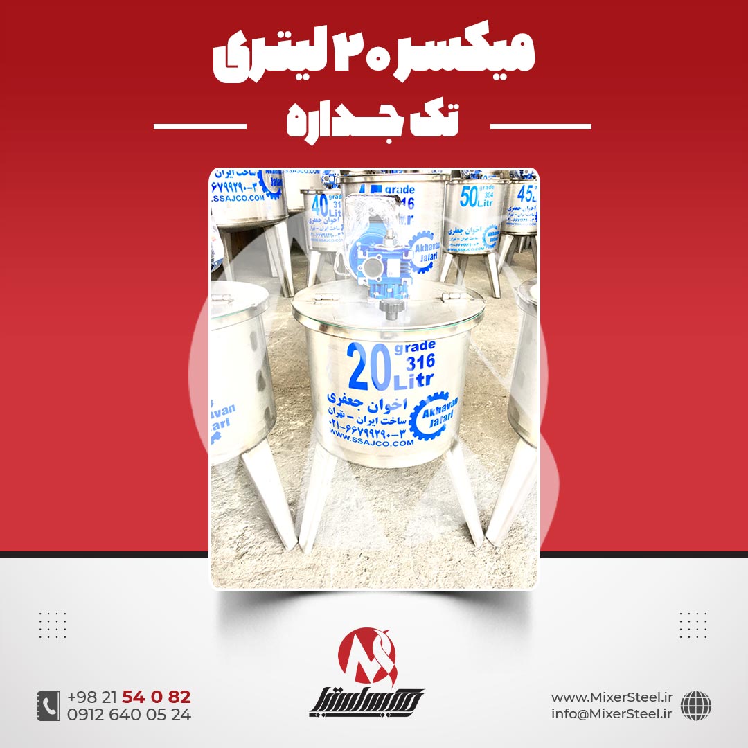 خرید میکسر استیل 20 لیتری تکجداره 316 | قیمت روز + سفارش ساخت سریع