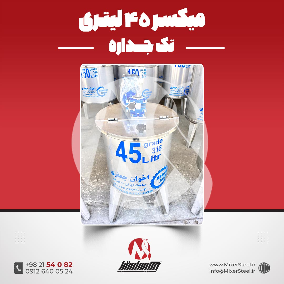 خرید میکسر استیل 45 لیتری 316 تکجداره گیربکسی 160 دور | قیمت روز + سفارش ساخت فوری