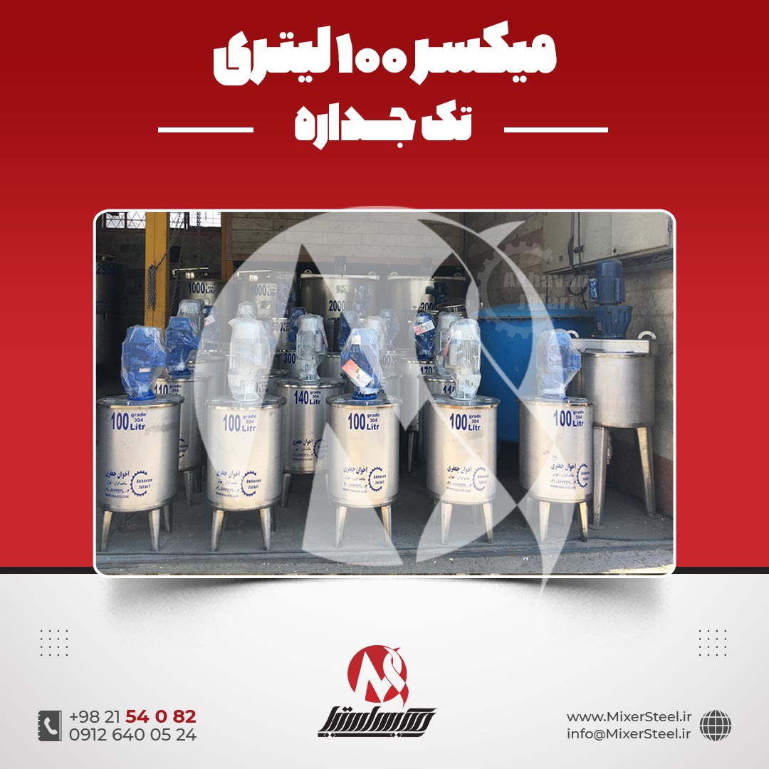 خرید میکسر استیل تکجداره سفارشی از ۵۰ لیتر تا ۱۰ تن | قیمت روز+ساخت304/316مطابق خط تولید