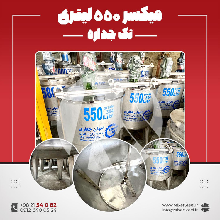 خرید میکسر استیل 550 لیتری 304 تکجداره آماده تحویل | قیمت روز + سفارش ساخت