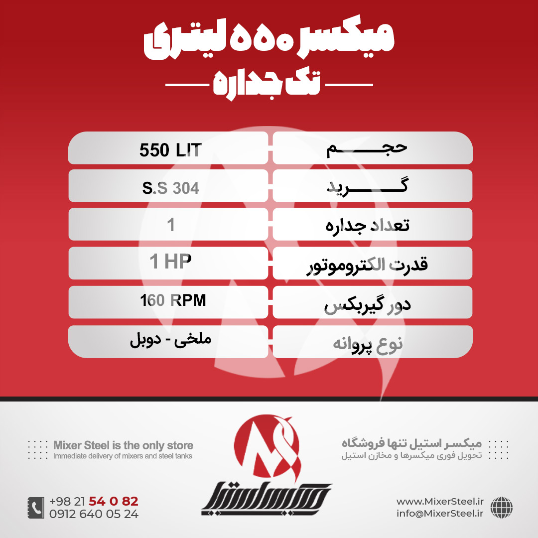 اگر میخوای قیمت روز میکسر استیل 550 لیتری رو سریع بگیری و سفارشت رو بدون رفتوبرگشت اضافه ببندی، از همینجا پیام بده: تماس با ما