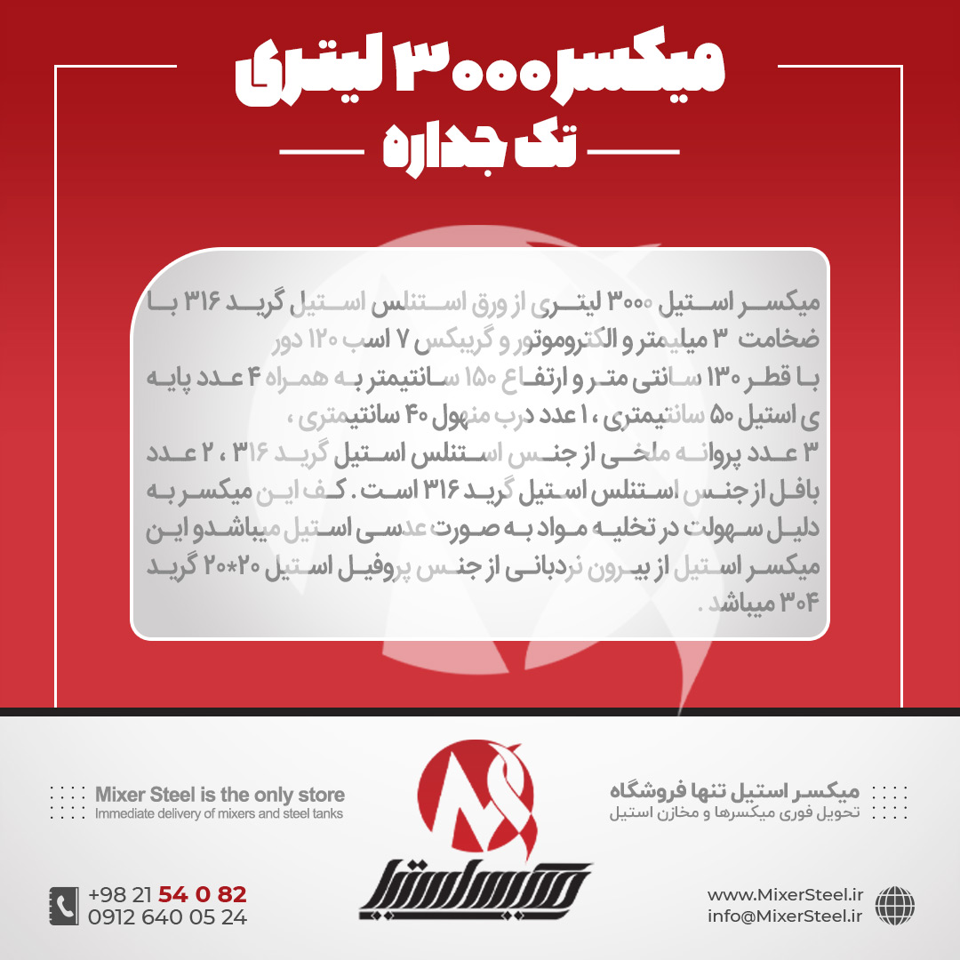 اگر میخوای قیمت روز میکسر استیل 3000 لیتری رو بگیری و سفارش ساخت رو بدون رفتوبرگشت اضافه ببندی، از اینجا اقدام کن: تماس با ما