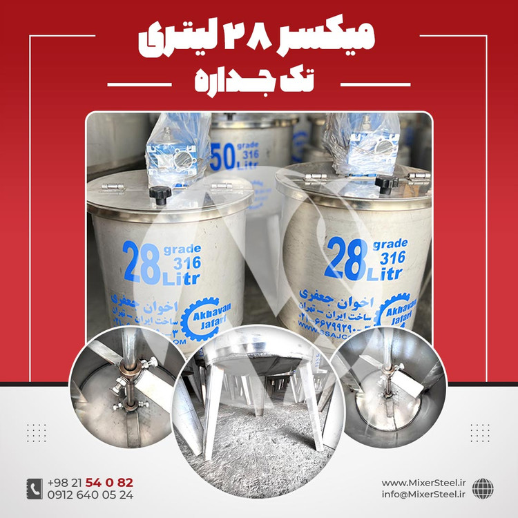 خرید میکسر استیل 28 لیتری 316 تکجداره | قیمت روز + سفارش ساخت سریع