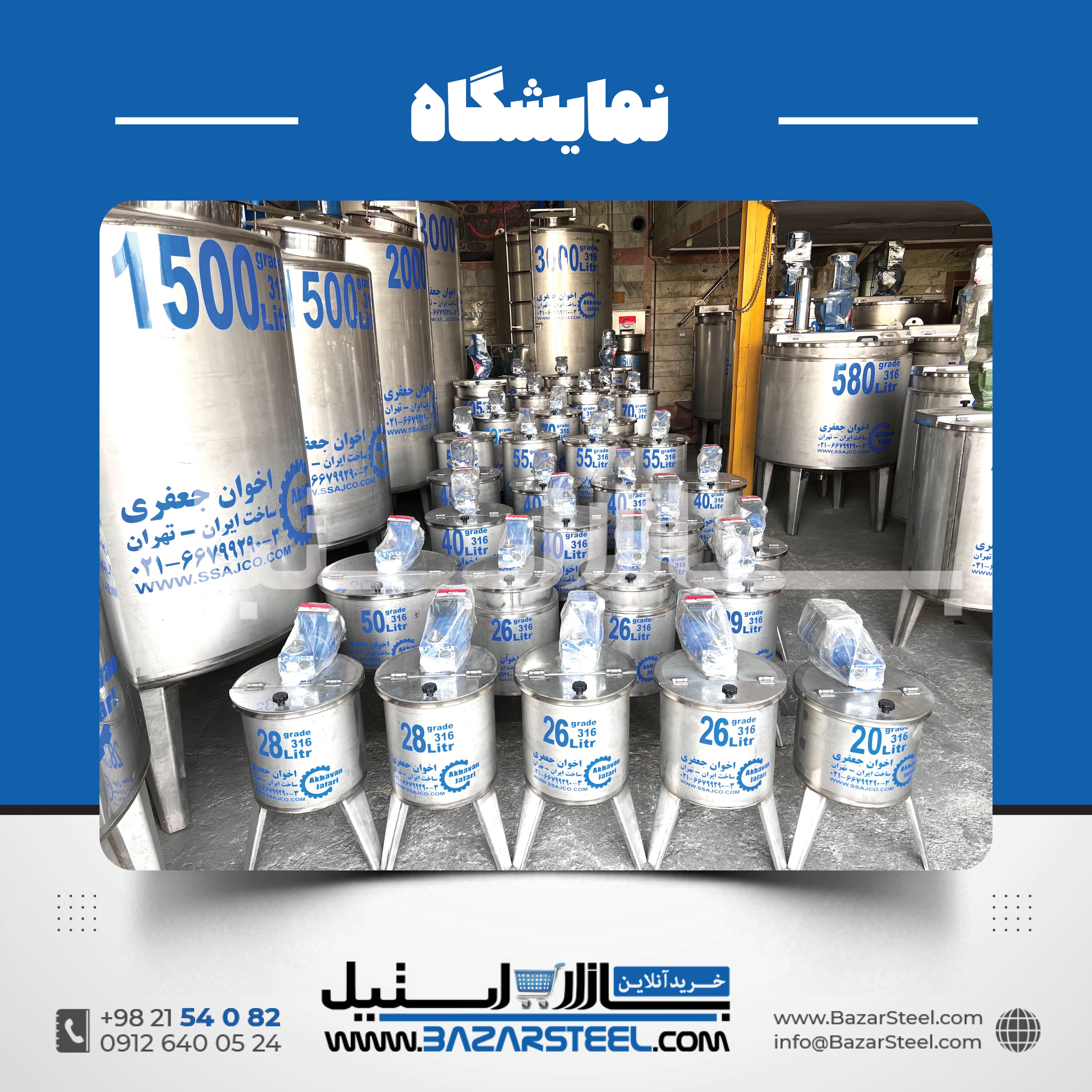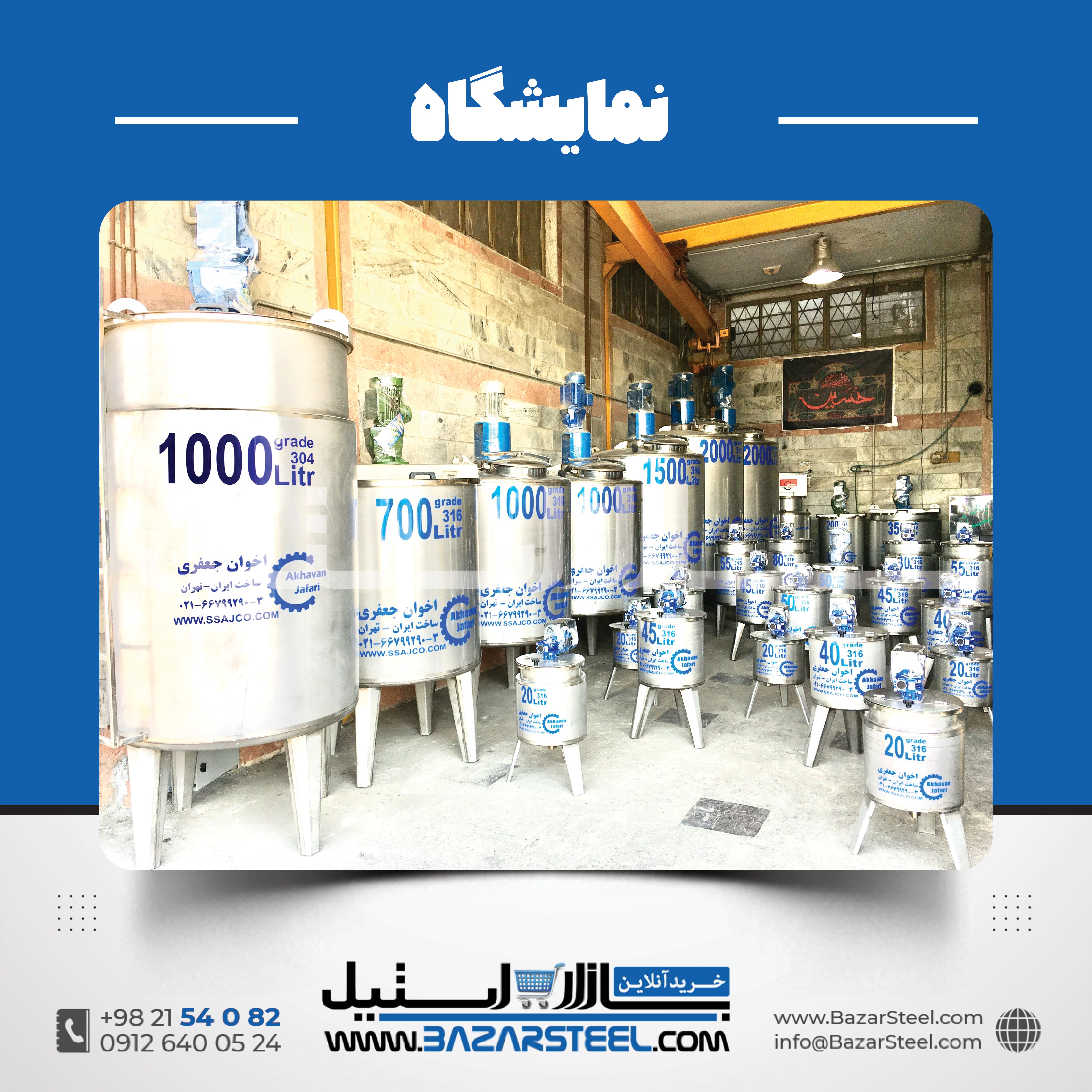برای سفارش دقیق و نقشهمحور و دیدن دیتیلها: نقشهها و دیتیلهای مخازن استیل و برای خرید اصولیتر: راهنمای خرید.