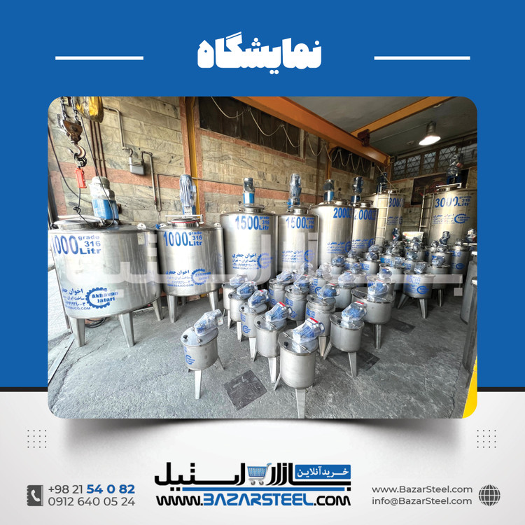 خرید مخزن استیل ۲۰۰ تا ۵۰۰ لیتری + میکسر استیل ۲۰۰ تا ۵۰۰ لیتری | قیمت روز 304 و 316