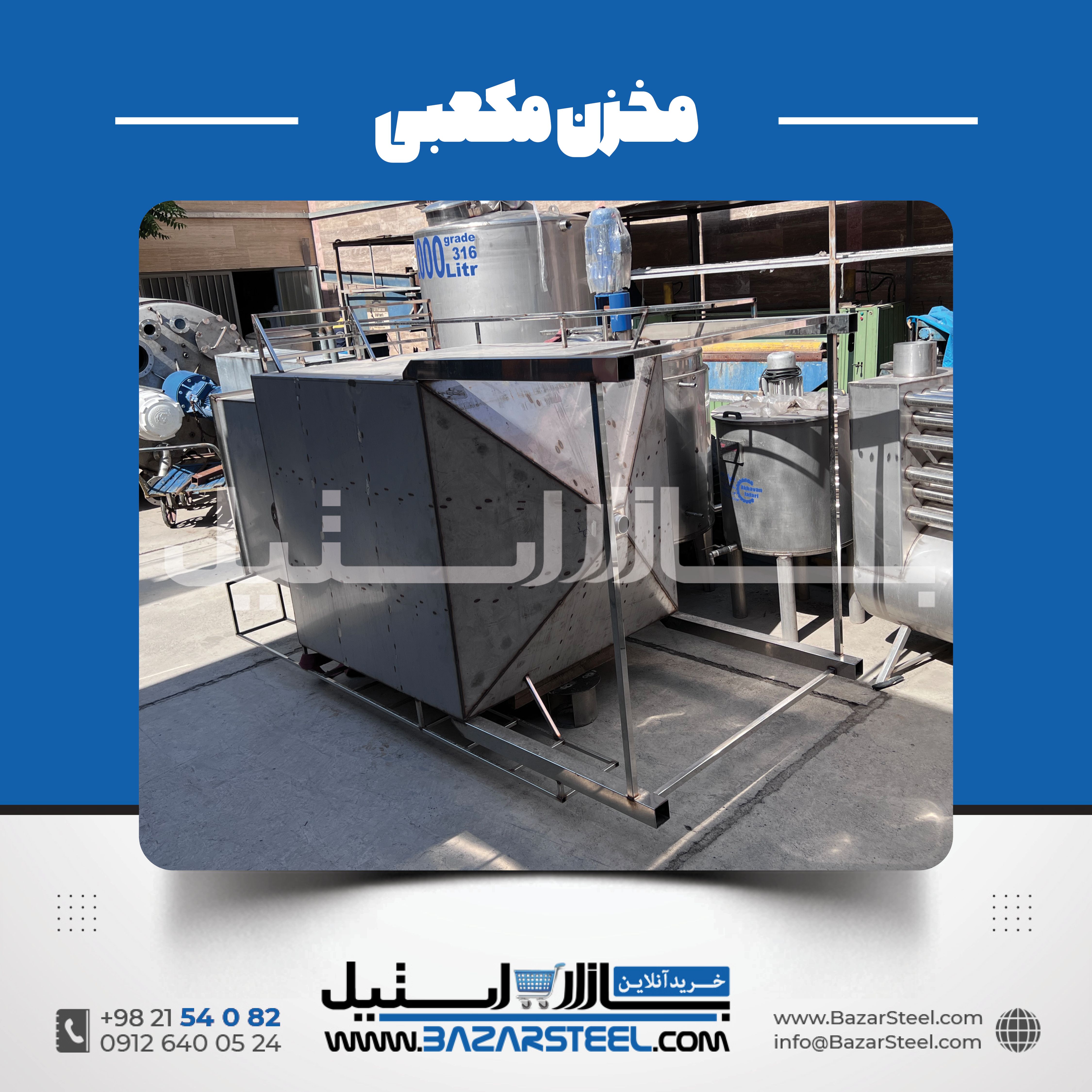 خرید مخزن استیل مکعبی (چهارگوش) | قیمت روز 304 و 316 + سفارش ساخت