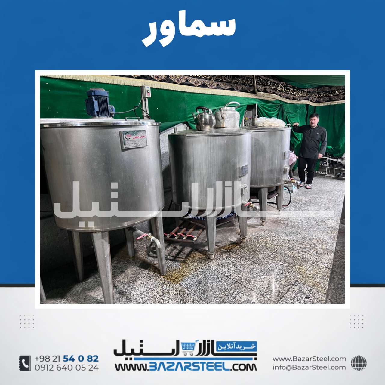 خرید سماور استیل ۹۰۰ لیتری برقی 304 |قیمت سماور صنعتی سهفاز ایستگاه صلواتی (۱۵ سال ضمانت)